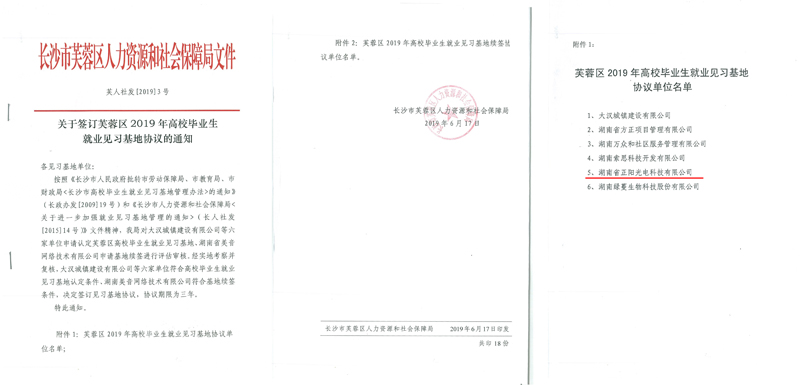 2019年6月17日,長沙市芙蓉區(qū)人力資源和社會保障局下發(fā)紅頭文件“芙人社發(fā)[2019]3號”,僅六家芙蓉區(qū)單位成為高校畢業(yè)生就業(yè)見習(xí)基地,湖南正陽為其中一家,并與我司簽...